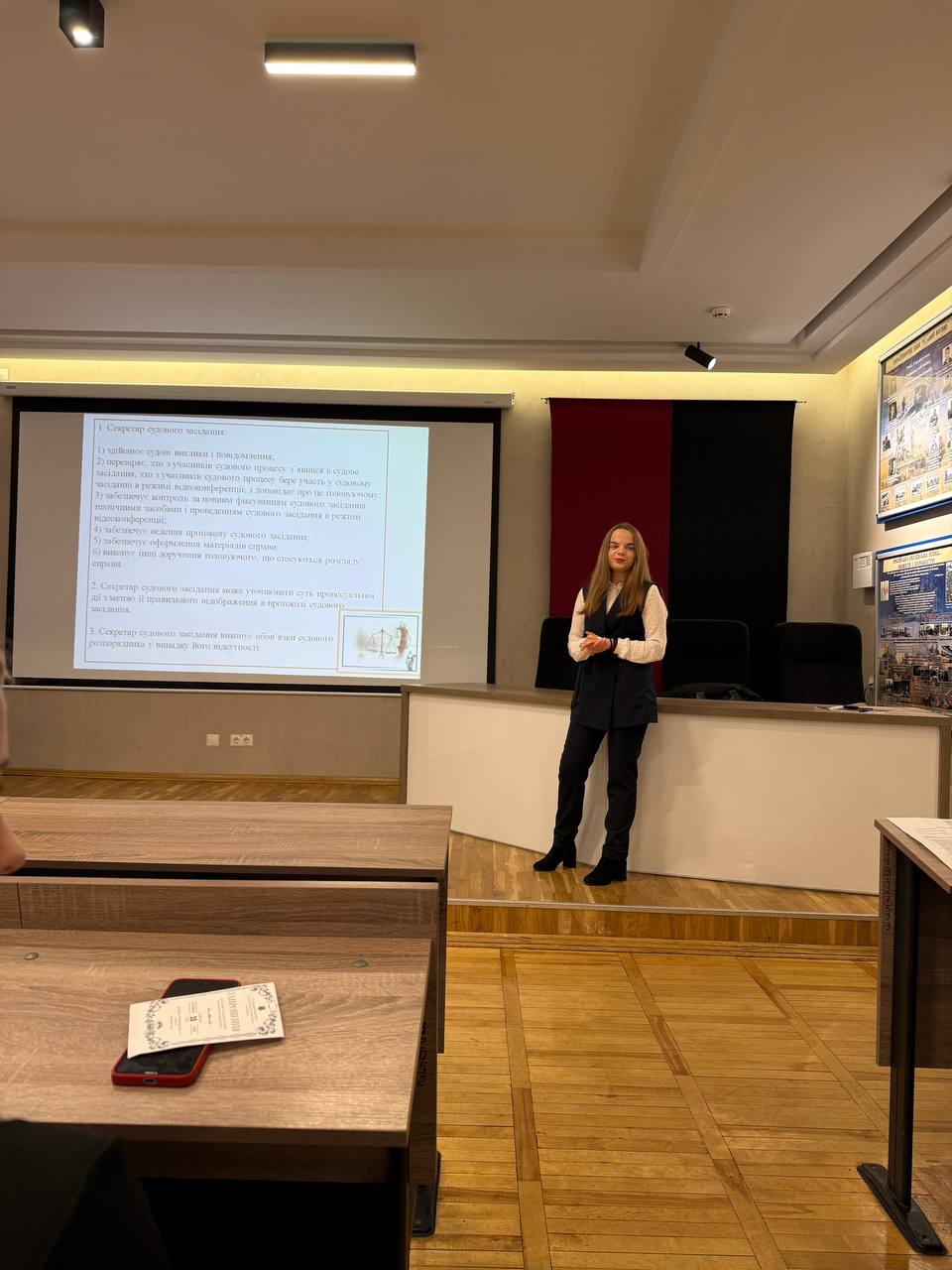 Запрошені гості поділилися власним досвідом роботи в суді, розповіли про щоденні завдання секретаря судового засідання, вимоги до професійних якостей та навички, без яких неможливо уявити ефективну роботу правосуддя.