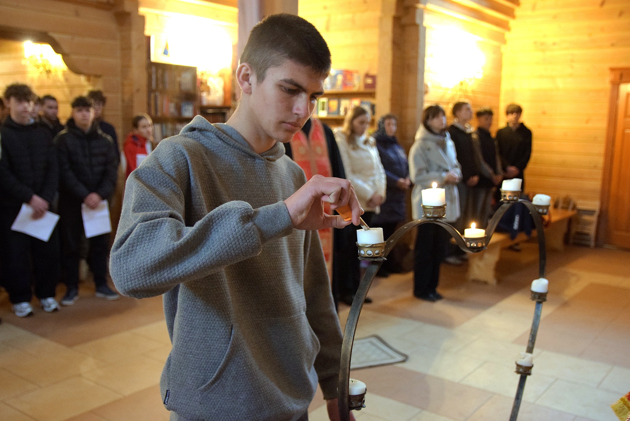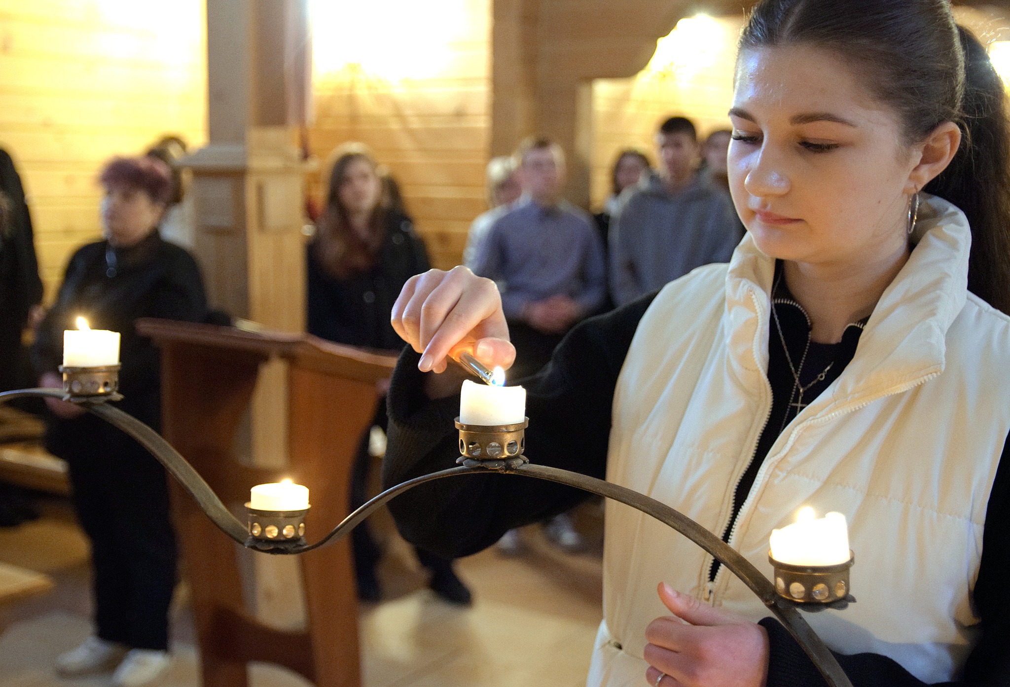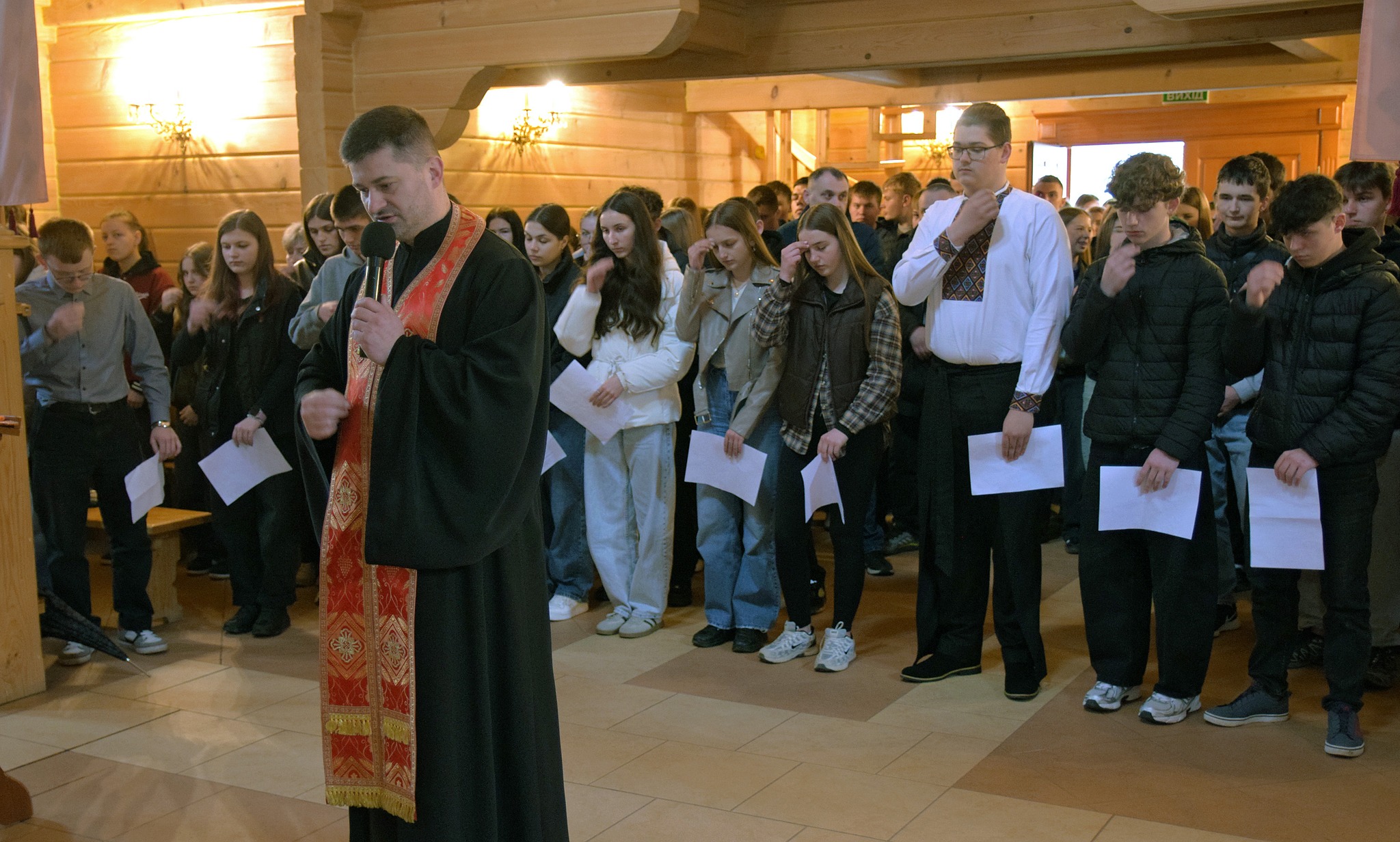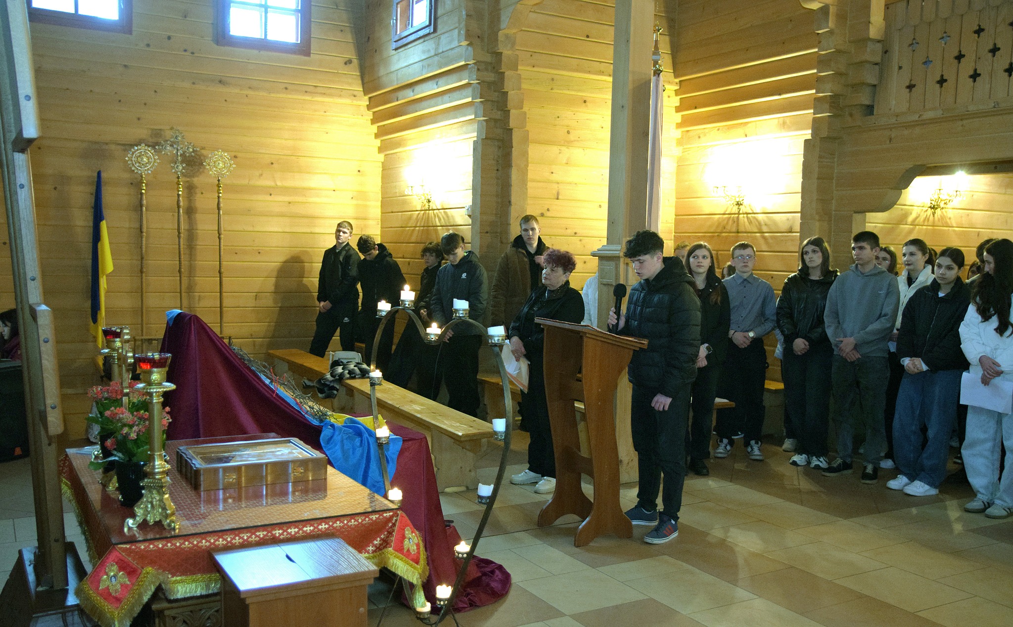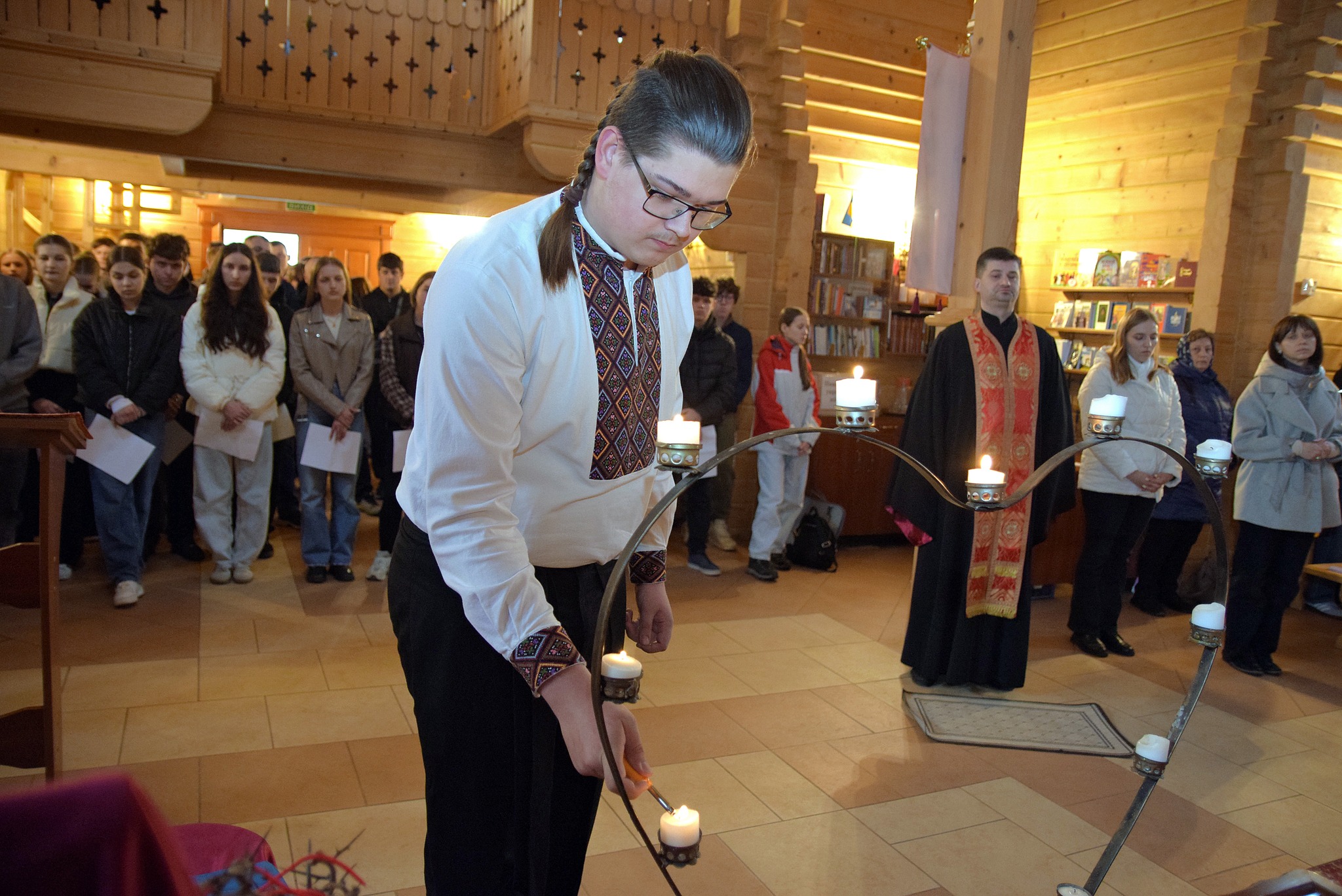 До спільної молитви долучилися студенти Галицького фахового коледжу імені В’ячеслава Чорновола. Під час молитви присутні розважали над страстями Ісуса Христа — і водночас над болем, який переживає Україна.