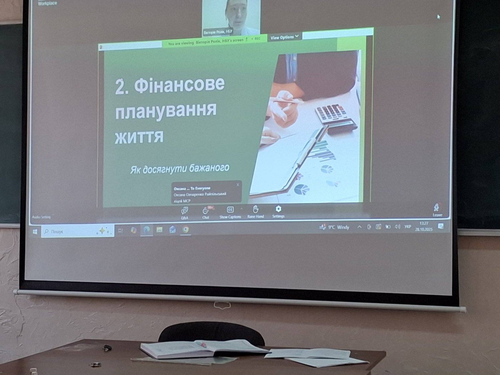 Юні фінансисти взяли участь у практичному воркшопі "Мій фінансовий план" від головного експерта управління зв’язків з громадськістю та фінансової обізнаності Департаменту комунікацій НБУ Вікторії Ролік.